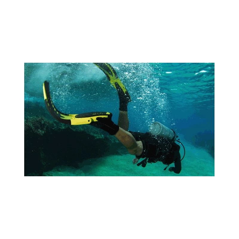 L’AMPHIBIAN d’Omega Aquatics est une palme réglable à voilure rétractable qui permet de se déplacer sous l’eau (comme on le demande à toute palme), mais aussi de marcher pour se déplacer efficacement & en toute sécurité tout en les gardant aux pieds.