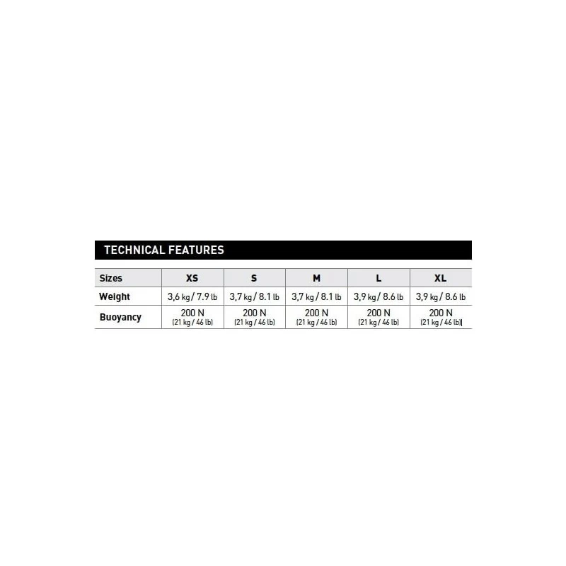 Flottabilité : pour toutes les tailles => 200 N (en taille Large)