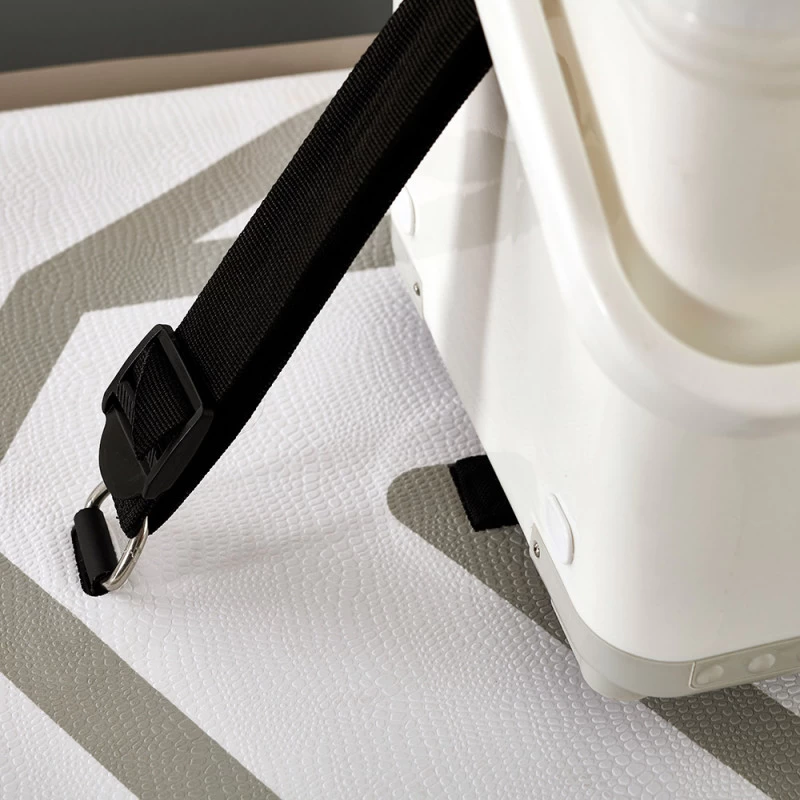 2 anneaux « D » insérés au milieu de la planche afin de fixer la glacière optionnelle