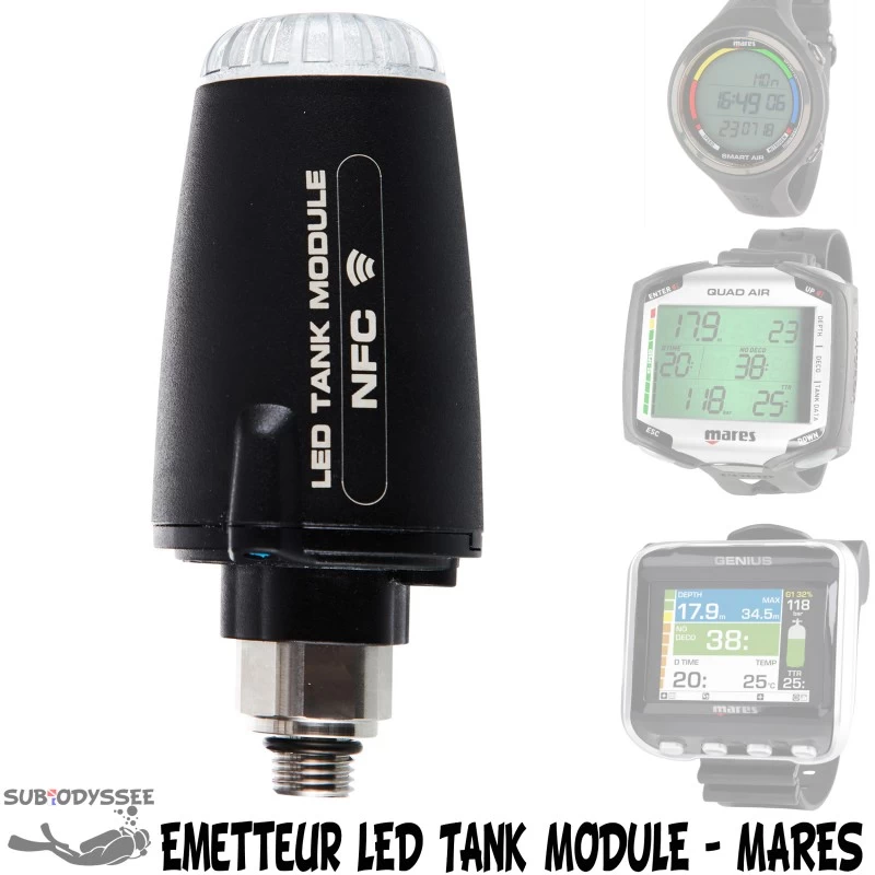 – L’émetteur LED Tank Modules Mares transmet les informations du bloc directement à votre ordinateur de plongée Mares, mais il signale également aux binômes de plongée un faible niveau d’air en plongée grâce à 3 niveaux d’alerte matérialisés par des couleurs.